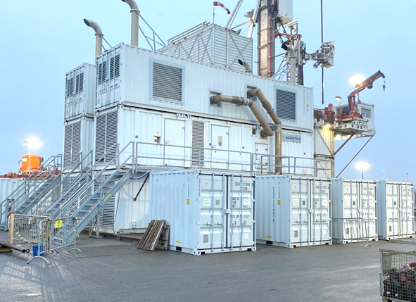 Um den Aufwand beim Rig Move sowie das Aufstellungslayout so klein wie möglich zu halten, wurden die Bestandteile des Systems in Iso-Containern verbaut.